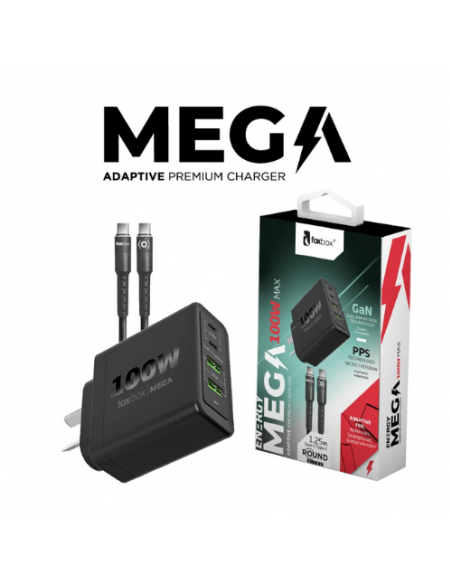 El Cargador Foxbox Mega 100w + Cable Type Cpd20w Qc 3.0 Gan Pps - 4 Puertos De Carga + Cable Round Type C (5928) - Blanco - Negro es un cargador de alta potencia que ofrece una carga rápida y segura para hasta 4 dispositivos al mismo tiempo. Con una potencia de carga de 100W, es ideal para cargar smartphones, tablets y otros dispositivos electrónicos. El cargador cuenta con 4 puertos de carga, lo que lo hace ideal para hogares y oficinas donde se necesitan múltiples cargas al mismo tiempo. El cable Type Cpd20w Qc 3.0 Gan Pps es compatible con dispositivos que admiten carga rápida y tiene una capacidad de transferencia de datos de hasta 20W. Además, el cargador viene con un cable Round Type C para cargar dispositivos que no tienen puerto USB-C. El cargador también cuenta con protección contra sobrecalentamiento, sobretensión y sobrecarga, lo que lo hace seguro para usar. En resumen, este cargador es ideal para aquellos que necesitan cargar múltiples dispositivos al mismo tiempo y desean una carga rápida y segura.