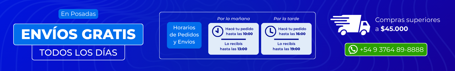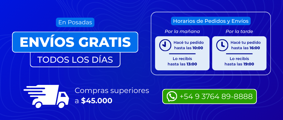 ¡Envíos GRATIS en Posadas! Quedate tranqui en casa y pagá al recibir, así de simple. Escribinos al 3764 89 8888 - En compras a partir de $45.000